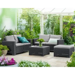 Keter California 5 Seater Outdoor Garden Furniture Sofa And Lounge Set – Graphite With Grey Cushions